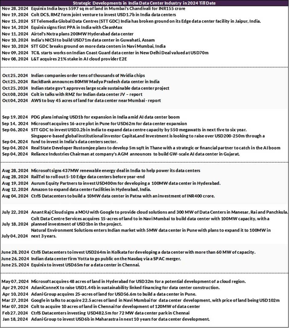 Indian Government to Establish Sovereign Data Centers: To efficiently roll out and adopt the National eGovernance Plan, the Government of India has identified the establishment of state data centers as a core infrastructure element. These data centers will function as a critical digital “nervous system,” enabling secure, 24/7 electronic delivery of G2G (Government to Government), G2C (Government to Citizen), and G2B (Government to Business) services. The central government has allocated a budget of approximately INR16.232b (~USD195m at INR84.07) for establishing these state data centers. Currently, the Government of India, through the National Informatics Center (NIC), is setting up national data centers to provide e-Governance services.