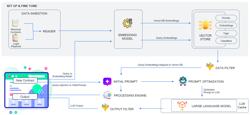 Through GenAI-powered analysis, the solution identified non-compliant clauses, suggested alternatives, and provided valuable insights based on historical agreements. While the application did not eliminate the need for expert decision-making, it significantly simplified the reviewers’ lives. Through its ability to ingest a variety of prevalent document types, the solution directly helped Procurement buyers gain efficiency in their contract life cycle processes. The solution swiftly scanned agreements to flag hidden risks found in ambiguous non-compliant clauses, allowing the client to address such risks proactively and protecting the organization from potential legal and business risk exposure.