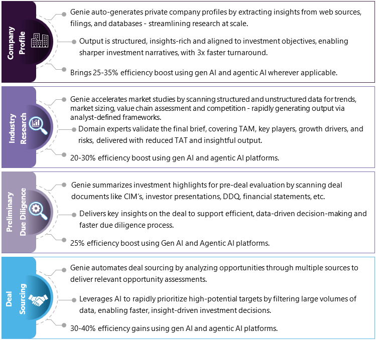 Agentic AI has moved from pilot to production in private equity. Embedded in existing tools—and paired with human review—it shortens research cycles, sharpens targeting, and improves auditability. In this piece, Deepesh Bhatnagar (VP & Head, Private Equity) and Arpit Varma (Associate Director) explain how Evalueserve tackles this shift: domain experts set direction and guardrails, while agentic workflows deliver speed and consistency.