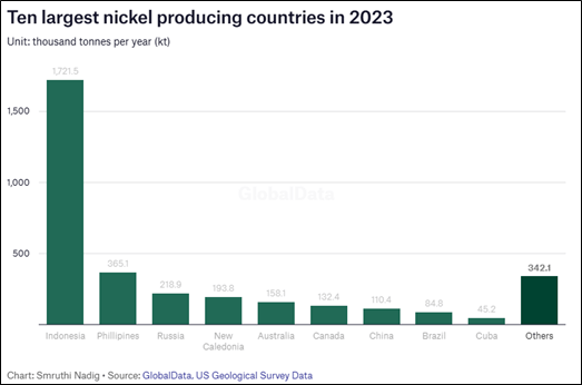Meanwhile, China has developed a robust EV battery ecosystem and dominated the global market, contributing 70% of global production capacity and 38% of global supply in 2024. Despite having merely 4.4 million tons of nickel reserve, leading Chinese electric vehicle battery producers like Contemporary Amperex Technology Co. (CATL) and Tsingshan Holding Group have invested in nickel mining sites worldwide to secure raw material supplies, driving China’s nickel ore import to become a USD 3.3 billion market as of 2023.