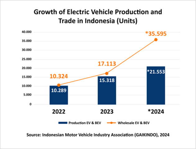 The two- and three-wheel EV segments in Indonesia have been saturated with 63 companies in the market, jointly possessing annual production capacity of 2.28 million units. In contrast, the four-wheel and bus segments are in still nascent stage, comprising just 16 manufacturers with a total annual capacity of slightly over 70,000 units. Despite a staggering 78% growth in the EV population since 2023, Indonesia still lags behind from reaching the government’s ambitious target, registering only 207,000 EVs in 2024.