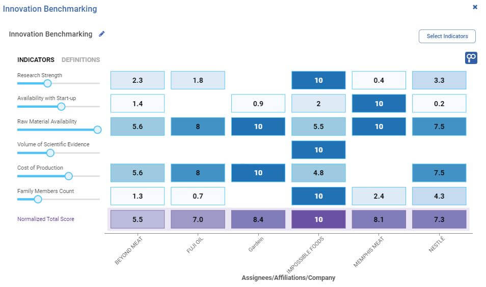 Figure 2: An innovation benchmarking comparing companies based on various user defined parameters.