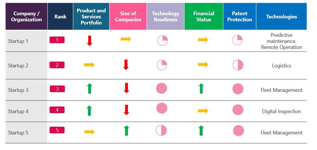 Some clients who have ventured into the digital space seek partners to adapt quickly to the identified use cases. As shown below, we help our clients identify partners based on technology relevance, readiness, and financial positions.